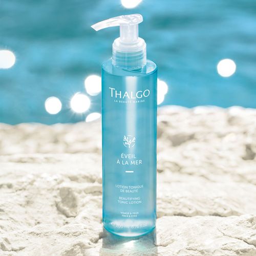 Eine frische Lotion mit Meereswirkstoffen, die die Make-up-Entfernung vervollständigt, Feuchtigkeit spendet und die Haut tonisiert.