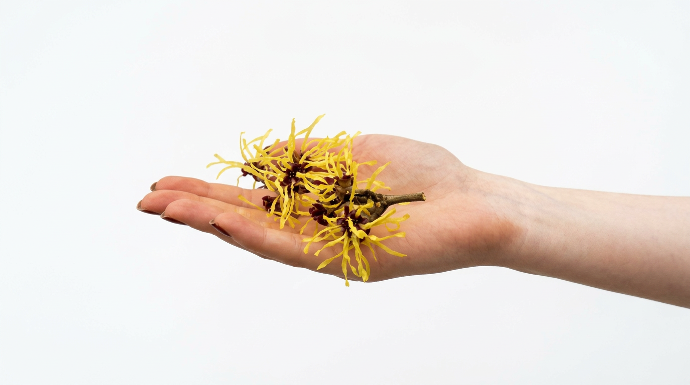 Hamamelisblätter-Extrakt wirkt klärend, adstringierend und beruhigend, verfeinert die Poren und sorgt für ein ausgeglichenes Hautbild.